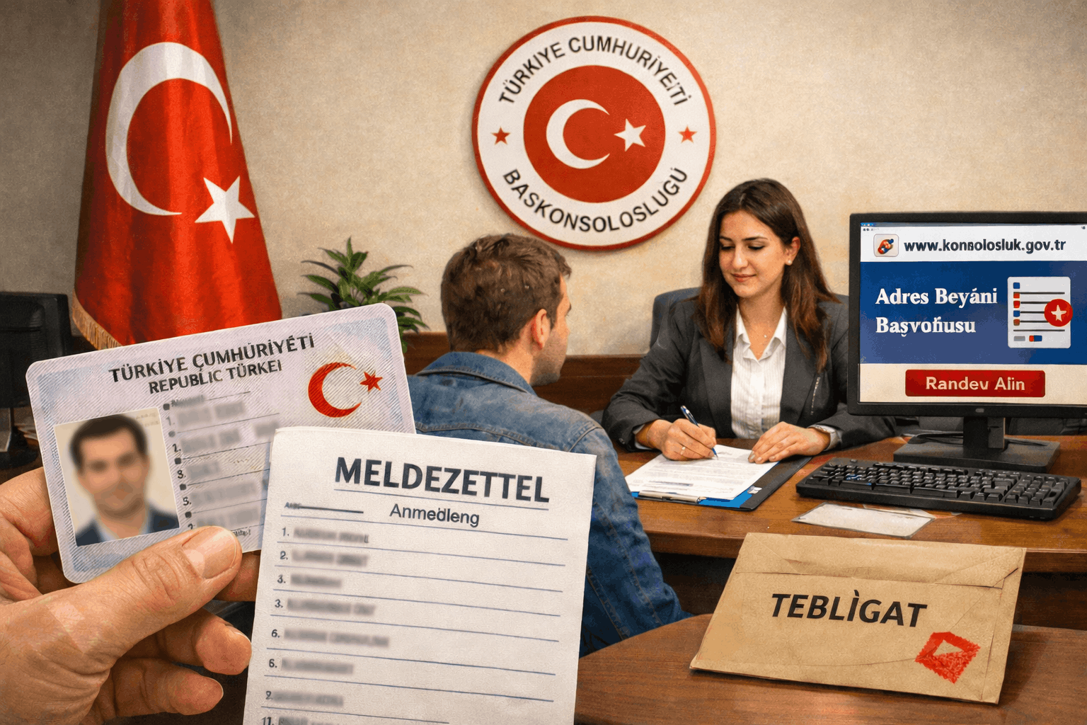 Adres beyanı işlemi için vatandaşların T.C. Kimlik Kartı ve ikamet belgesi (Meldezettel) ile birlikte, www.konsolosluk.gov.tr adresi üzerinden “Nüfus” başlığı altında yer alan “Adres Beyanı Başvurusu” bölümünden randevu alarak başvuru yapmaları gerekiyor.
