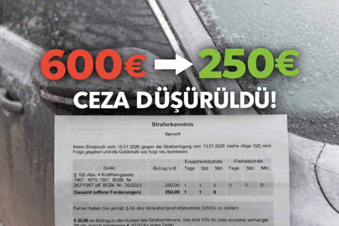 Aradan geçen sürenin ardından yetkili makamlar tarafından gönderilen resmi yazıda, olayın yeniden değerlendirildiği ve kesilen cezanın 250 Euro’ya düşürüldüğü bildirildi.