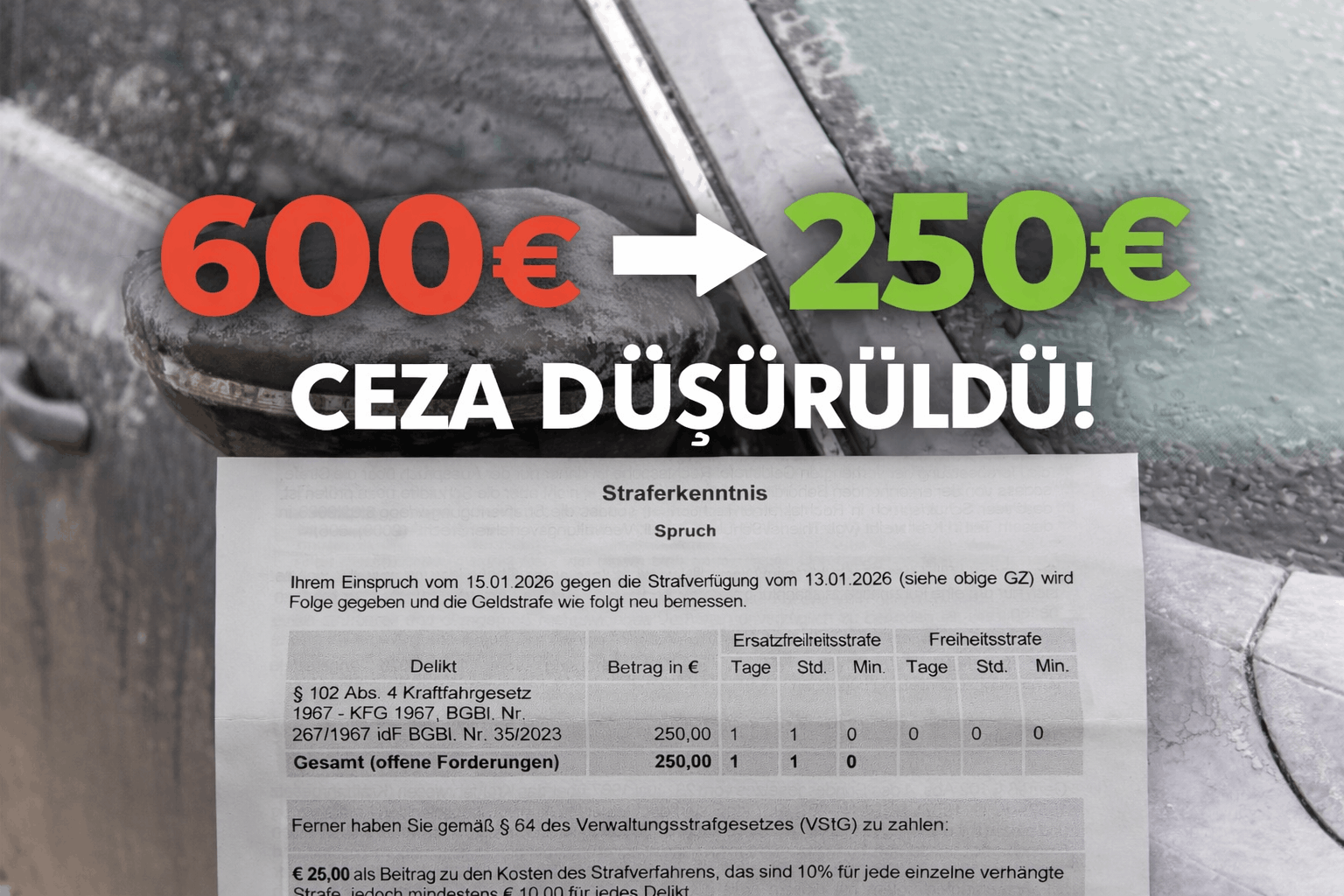Bilindiği üzere söz konusu olay, Ocak ayının ortasında Gürtel bölgesinde meydana gelmiş ve park halindeki araçta motorun çalışır durumda bekletilmesi, İklim Koruma Kanunu kapsamında ihlal olarak değerlendirilmişti. İlk etapta kesilen 600 Euro’luk ceza, hem Avusturya’da hem de yurt dışında tartışmalara yol açmıştı.