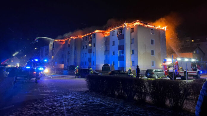 Yukarı Avusturya (OÖ) eyaletine bağlı Traun bölgesinde yılbaşı gecesi (31 Aralık 2025) bir sitenin çatı katında yangın çıktı.